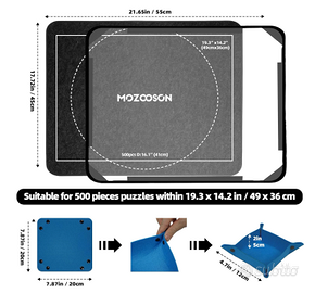 1. Tappetino per puzzle in feltro antiscivolo: Il tappetino per puzzle MOZOOSON utilizza feltro di alta densità premium che può ospitare in modo sicuro puzzle da 500 pezzi. La superficie imbottita protegge i pezzi del puzzle dai graffi, mentre la grana testurizzata del feltro impedisce efficacemente lo spostamento accidentale dei pezzi durante il montaggio