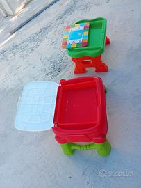 Tavolini in plastica rigida per bambini, colori e decori unisex, Clementoni e carotina Lisciani, utilizzabili e resistenti sia al chiuso che all' aperto... gambe removibili e richiudibili, con vano portafogli ed oggetti... due modelli come foto, vendo singolarmente