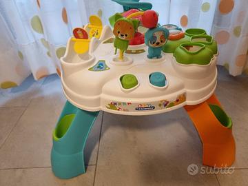 Il gioco è come da foto. Mancano la pallina e le forme geometriche da inserire nei fori.