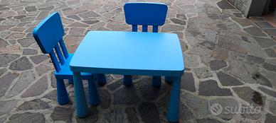 VENDO UN TAVOLINO CON ABBINATE DUE SEDIE TUTTO DI COLORE AZZURRO PER INTERNO O ESTERNO: