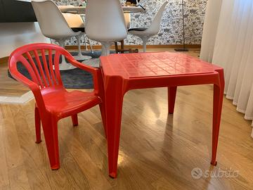Vendo tavolino da gioco rosso per bambini usato pochissimo, misure 50x55 cm, h. 44 cm con seggiolina rossa altezza da terra 24 cm. larghezza seduta 25 cm. altezza schienale 52 cm.