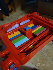 Vendo tavolino per incastri grandi, con piano apribile e porta incastri, sacchetto di incastri a parte. Il tavolino ha i piedi pieghevoli per ridurne l'ingombro o giocare a terra.