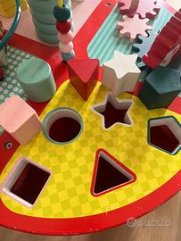 Vendo il tavolo attivita Baby Forest Janod che è un must per tutti i bambini. Questo tavolo da attività in legno offre molti giochi di manipolazione e incastro per bambini a partire da 1 anno! Le sue quattro diverse aree giochi gli regalano stimoli e divertimento grazie a 3 animali impilabili e un labirinto per sviluppare destrezza, un sistema di ingranaggi a 4 ruote per la coordinazione, 5 cubi da incastrare per imparare forme e colori, un abaco per sviluppare concentrazione e capacità motorie.