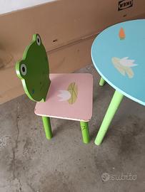 tavolinetto in legno completo di sedia per attività di gioco,disegno e attività.