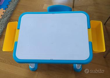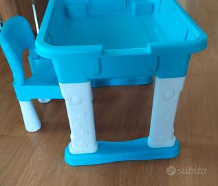 Vendo bellissimo tavolino multi attività 5 in 1 in quasi ottime condizioni a parte qualche piccolo striscio. Contiene anche due tasche laterali porta oggetti e sedia in plastica.
