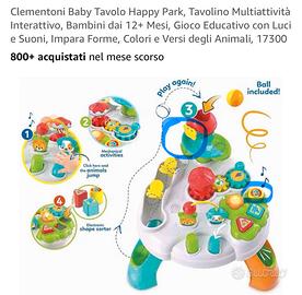 TAVOLO HAPPY PARK: un tavolino multiattività interattivo per bambini, con luci, suoni e attività che stimolano l’apprendimento di forme, colori e versi degli animali, offrendo un’esperienza di gioco coinvolgente, aiutando i più piccoli a sviluppare abilità motorie e cognitive mentre esplorano forme, colori e versi degli animali, divertendosi e imparando allo stesso tempo