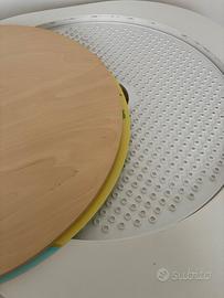 Tavolino per bambini con tre gambe e altezza regolabile, multi piano: liscio, lavagna, per puzzle in dotazione, lego duolo e lego classico.
