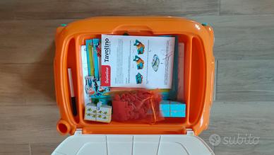 Contiene attività interattive che stimolano la curiosità e la creatività dei bambini. Ci sono pulsanti da premere, ingranaggi da girare, forme da incastrare e tanto altro ancora.