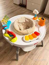 Utilizzabile come centro attività con seggiolino girevole a 360 gradi, dotato di giochi interattivi e pianola luminosa che stimola i bambini. Cresce con loro trasformandosi in tavolino da gioco o da disegno, con seduta comoda e rivestimento lavabile, pratico e sicuro.