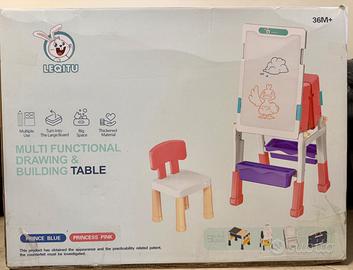Tavolo da disegno multifunzionale per bambini ( lavagna magnetica, tavolo da costruzione, tavolo da disegno).C’è un inconveniente nell’ultima foto, manca un fermo. Dimensioni del pacco 61*47*17