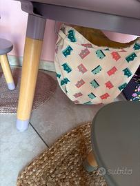 Vendo tavolo da gioco multifunzione MUTABLE design con la semplicità di un sistema modulare, il tavolo da gioco si adatta alle esigenze fisiche e di sviluppo del bambino durante la crescita. Il tavolo e le due sedie sono regolabili in altezza. La vendita comprende anche tutti gli accessori: -MUtable, il Tavolo Multigioco Variazione: Rosa Malva -Contenitore Portagiochi MUtable -Sacca Raccogligiochi MUtable Variazione: Corone -Sedie in Legno MUtable Variazione: Dove Grey -Sedie in Legno MUtable Variazione: Rosa Malva -Cover MUtable in Silicone Variazione: Malva -DISKcover Frutta e Verdura 2 Giochi - MUtable 1 Trasporto e smontaggio a carico dell’acquirente Prezzo competo di tutto € 180,00