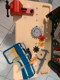 Il tavolo da lavoro bosch è usato ma con tutti i 79 pezzi in dotazione... più altri utensili e attrezzi di altre marche in plastica e legno!!! C'è anche il marsupio da lavoro porta attrezzi!!!
