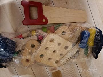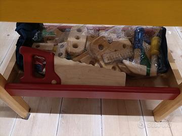 Tavolo da lavoro in legno con attrezzi (vedi foto), consegna a mano