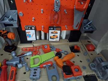 Vendo tavolo da lavoro smoby dotato di tutte le sue parti, viti, bulloni, carte, attrezzi e anche alcuni attrezzi extra non appartenenti al gioco