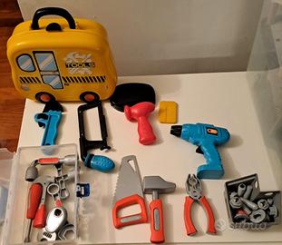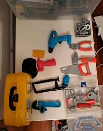 Vendo tavolo da lavoro Smoby, non completo, ma con vari accessori tra cui viti, chiodi, dadi, martello, seghetto e cacciavite (non sono presenti tutti gli utensili originali).