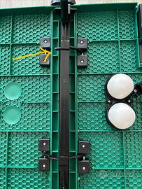ping pong da tavolo per bambini Misura 66 × 33 si è rotto un fermino nella parte inferiore, ma questo non compromette la possibilità di tenere il tavolo aperto. E'quello indicato dalla freccia è uno dei fermini/clip.Il tavolo rimane comunque stabile, perché il carico principale è sostenuto dalla struttura centrale ad incastro. € 10,00