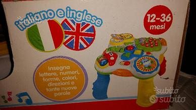 Gli amici del bosco accompagnano il bambino alla scoperta di lettere, numeri, forme, colori e tante nuove parole anche in inglese. Il libro-mela racconta la storia del bruco che si trasforma in farfalla, la rana si allunga e salta, premendo l'uccellino l'albero insegna i numeri, l'orologio con il coniglio introduce l'alfabeto. E c'è anche un laghetto con simpatiche formine e un funghetto con 3 tasti musicali luminosi. Gambe removibili.