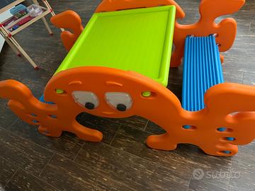 Tavolo dondolo Feber: da un lato tavolo e dall'altro dondolo, per interno ed esterno, per bambini da 1 anno in poi.