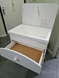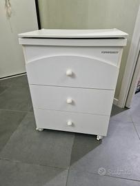 Come titolo vendo Foppapedretti Bagnetto Fasciatoio in legno colore bianco. 3 cassetti, tavolo fasciatoio ribaltabile, vaschetta estraibile, ruote. 89 cm altezza, 68,5 cm larghezza, 49 cm profondità. possibilità di spedizione.
