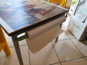 Sopra gli abbiamo fatto fare una pellicola con una parte del quadro di Raffaello “La Scuola di Atene” e gli abbiamo aggiunto un porta rotolo di carta che è stato fatto su misura per il rotolo IKEA da 30 metri, di cui vi lascio i riferimenti qui sotto:
