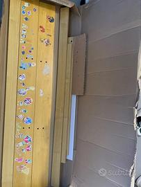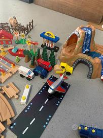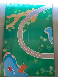 Tavolo giochi multiuso con pista trenino completa. Ideale dai 3 ai 5-6 anni. In ottime condizioni. Solo alcuni adesivi da togliere. Rimovibili.