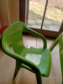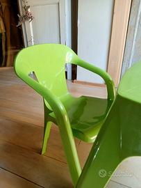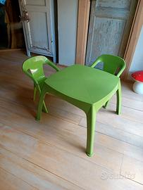 tavolo in plastica verde con due sedie per bimbi bambini , può essere utilizzato sia in casa che lasciato all'esterno.