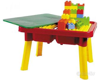 Unico Plus Maxi Tavolo Multigioco con ripiano e 2 piastre removibili per mattoncini. Incluso di tanti mattoncini da costruzione. Dimensioni: 73 x 53 x 19 cm