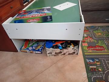 tavolo per giochi con cassetto, salvaspazio. leggermente segnato. misure 85 cm larghezza, 125 cm lunghezza e 46cm di altezza .Tavolo smontato (facilmente rimontabile), si può trasportare in macchina. Non uso corrieri
