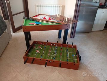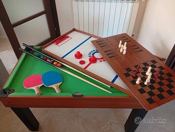 vendo tavolo multigioco 7 in 1 composto da: calcio balilla, biliardo, ping pong, hockey, bowling, shuffleboard, backgammon, black jack, scacchi, dama completi con accessori, dadi con bussolotto, carte da gioco. Disponibilità immediata. Ritiro a cura del compratore. zona Marsala centro