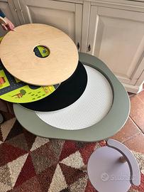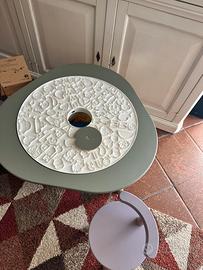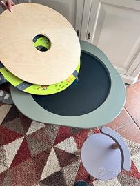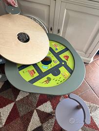 Tavolo in ottime condizioni completo di 3 sedie, 5 pannelli gioco, 3 puzzle in legno, sacca porta giochi, prolunghe per adattarsi alla crescita dei bambini. Come nuovo, vero affare!!!!!