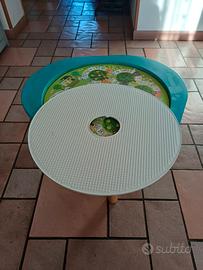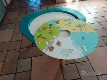 Vendo tavolo da gioco MuTable con diverse tavole intercambiabili (Lego con scenari, Duplo, casa delle bambole con relative bambole e arredamenti, pista per le macchinine, ambienti naturali, lavagna) e gambe allungabili a seconda dell'altezza del bambino. Il tavolo è usato ma in buono stato (presenta sul bordo delle macchie dovute a degli stickers rimossi) mentre gli accessori sono pari al nuovo. Disponibile a mandare ulteriori foto
