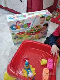 Questo meraviglioso banchetto è composto da 4 gambe a incastro senza spigoli, un vano contenitore in cui riporre le costruzioni, un piano multiattività con il quale cimentarsi a costruire e sviluppare in allegria la manualità, le capacità logiche e la fantasia. Usato pochissimo, ancora con scatola originale e libretto delle istruzioni.