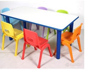 Vendo Set composto da tavolo rettangolare e 6 sedie colorate.