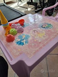 vendo tavolo e sedia in plastica disegno principesse. Borsa mare Frozen con giochi mare, sgabello rosa ,maschera boccaglio Mares e occhialini viola. No spedizione