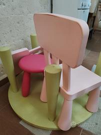 vendo tavolo verde rotondo con due sedie Rosa ed uno sgabello fucsia come da foto