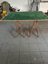 Vendo compensato di un cm di spessore con campo di calcio x subbuteo leggermente rovinato con 2 squadre e cavalletti compresi.. girandolo si può utilizzare anche come tavolo
