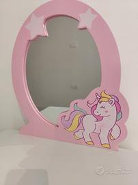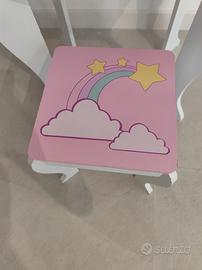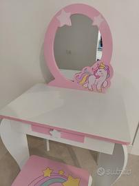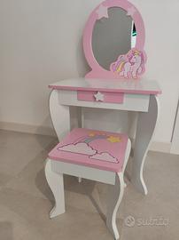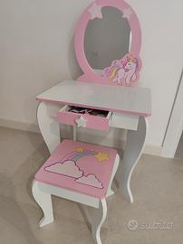 Toeletta Trucco per Bambini con Sgabello, Specchio Staccabile e Cassetto, Postazione Trucco in Legno per Cameretta 49.5 x 35.5 x 89cm (Bianco)