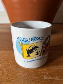 Tazza vintage Disney a tema Acquario. - Personaggi Disney con tema zodiacale. - Scritta Acquario e 21 gennaio 19 febbraio. - Logo DISNEY presente. - Misura 8 cm.