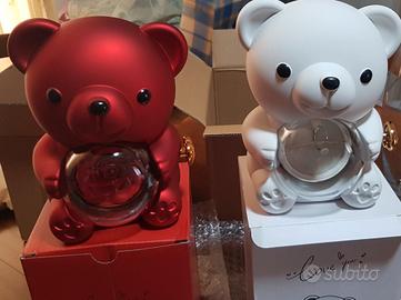 Delizioso orsetto decorativo in materiale opaco, con una sfera trasparente al centro pensata per contenere un fiore stabilizzato o un piccolo oggetto decorativo. Perfetto come idea regalo romantica, per anniversari, compleanni o San Valentino.