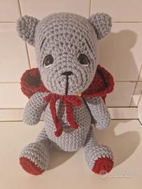 Orsetto in alpaca,viscosa e lana altezza 37cm con cappuccio in alpaca e lana