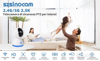 SZSINOCAM 2.5K 4MP Telecamera Wifi Interno per una Migliore Protezione Della Vostra Casa Risoluzione FHD da 2.5K/4MP: 2.5K 4MP obiettivo ad alta definizione, può catturare ogni dettaglio con sorprendente chiarezza senza perdere dettagli importanti. Chiamata Con un Clic: in caso di emergenza, basta premere il pulsante verde per chiamare la famiglia e gli amici. Rilevamento Intelligente del Movimento & Avvisi in Tempo Reale: Una volta che la videocamera sorveglianza interno wifi rileva un intruso o una persona sospetta, traccia automaticamente e invia avvisi in tempo reale al tuo telefono, proteggendo la tua sicurezza domestica in tempo reale. Visione Notturna a Colori: Visualizza immagini chiare e video in bassa luce sotto i 65 piedi. 2.4G/5Ghz WIFI: Segnale più forte e connessione più stabile. 360 ° Protezione: 355 ° traduzione, 110 ° inclinazione, protezione a tutto tondo. Registrazione 24 Ore: Offre una protezione ininterrotta e più completa. 100% Wireless: Nessun difetto di linea, nessun cavo di alimentazione o cavi di rete. Basta mantenere l'installazione pulita. Non spedisco con POSTE; scegliere InPOST o BRT