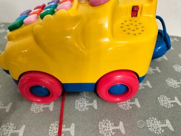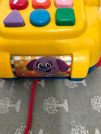 Telefono della Fisher price bimbo con cordicina per poterlo tirare, cornetta con palline che si muovono. Si illumina il naso e muove la bocca quando si schiacciano i tasti, doveva parlare e dire il nome di ciò che si clicca, ma non si sente l audio. Resta comunque un bel giochino per bambini piccoli. In ottime condizioni esternamente