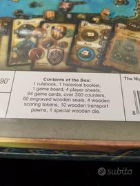 Gioco da tavolo, board game, gioco di società Templars, The Mystery of the Templars. Gioco da tavola IN LINGUA INGLESE con scatola ricchissima di dotazioni di gioco( vedi il peso sotto), per 2/4 giocatori di età superiore ai 13 anni. Durata del gioco: 120 minuti circa. La scatola è ancora nel suo cellophane originale, mai aperto: solo in 2/3 punti il cellophane di fabbrica ha creato dei piccoli buchi a causa del calore dei macchinari ( vedi foto).