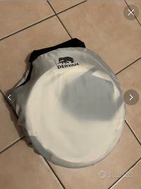Culla da viaggio pieghevole, perfetta per camper, campeggio o situazioni dove non è disponibile un lettino. Si può appoggiare sul letto o sul divano e avere la sicurezza che il bambino rimane in uno spazio contenuto e personale. Comoda anche all’aperto (pic-nic al parco - spiaggia). Con pratica zanzariera scura che si attacca con velcro. Apertura con l'esclusivo sistema pop-up, ideale in viaggio o a casa. Peso: 0,8 kg Adatto per: da 0 mesi a 18 mesi Dimensioni nella borsa da trasporto: 32 x 8 x 32 cm Dimensioni aperto: 98 x 60 x 32 cm Materiale: 100% poliestere Espandibile con un materasso autogonfiabile Usato solo per una vacanza, come nuovo.