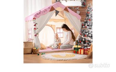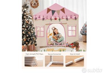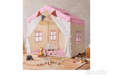 Tenda da Gioco per Bambini, Casetta dei Giochi per Interni ed Esterni 2 in 1 Tenda per Bambini Tenda Casetta da Gioco con 2 Porte e 4 Finestre, con Tappetino Imbottito, Luci Fatate e bandierine (Rosa). Nuova mai usata ancora nello scatolo originale.