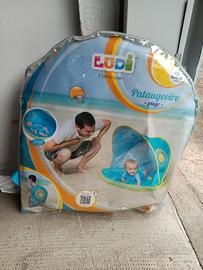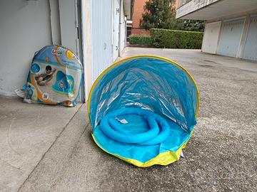 Piscina per bambini con ombreggiante di Ludi Piscina pedalabile super comoda per i bambini per la spiaggia. Questa graziosa piscina per bambini ha un design semplice e attento. Protegge neonati e bambini piccoli dal sole e dal vento grazie alla sua chioma anti-UV. Isola il bambino dal terreno, indipendentemente dalla superficie (sabbia, erba, pietra, ecc.). L'acqua nella piscina fornisce il necessario raffreddamento durante le calde giornate estive. Adatto per bambini a partire dai 3 mesi circa. Dimensioni: 80 x 80 x 63 cm.