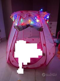 Casetta gioco per bambina. Tenda popup da riempire con le palline colorate per giocare sia dentro che in giardino. Tetto scoperchiabile, pieghevole, portatile, in poliestere di alta qualità (120cmx120cmx90cm).Stabile grazie al telaio di acciaio pieghevole
