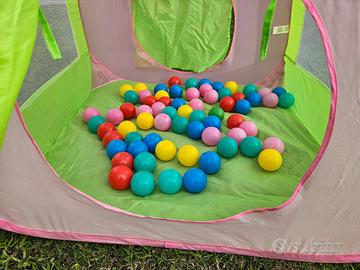 Tenda per bambini con due porte a tunnel, design in colori accesi, adatto a maschietti e femminucce.