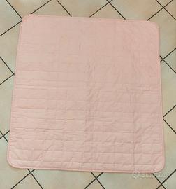 La tenda come visibile dalle foto è grigia e rosa e la dimensione del tappeto sotto è 115 cm x 115 cm.