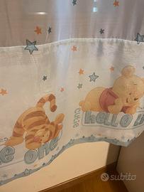Splendide tende x cameretta bambini con winni the pooh e moltissime stelline . Sono 3 tende per 3 finestre. Misure circa lunghezza 200 e larghezza 150